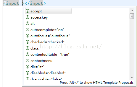 如果我想看看一个input元素有什么可用的属性,可以使用ctrl+shift+逗号,将属性列表展现出来。