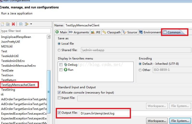 假设上面代码输出的内容太长,你可以在common选项中指定输出文件。在当前类文件中选择run configurations