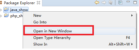 有时候同一个Eclipse 工作空间中,会存放多个项目,如果你在同一个窗口中不想看到太多的项目,那么可以new window窗口来达到这个目的。