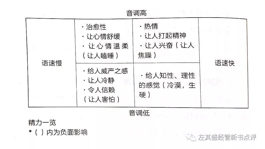 16:秘诀50:面对部下时,“低声x慢速”地讲话能留下亲切的印象,面对上司时,“低声x快速”地讲话能留下知性、有能力的印象。P136