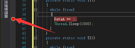 给代码添加一个断点,这样当代码执行到这里的时候就会挂起进程,此时代码会暂停执行,并等待用户操作.