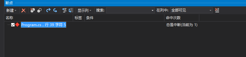按住Ctrl键不放,接着连续按D B键,能看到所有断点的列表。
