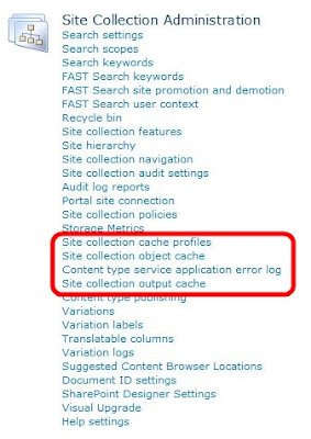 In order to enable cache for a site collection, navigate to the site collection settings page and then scroll down to the section “Site Collection Administration”.